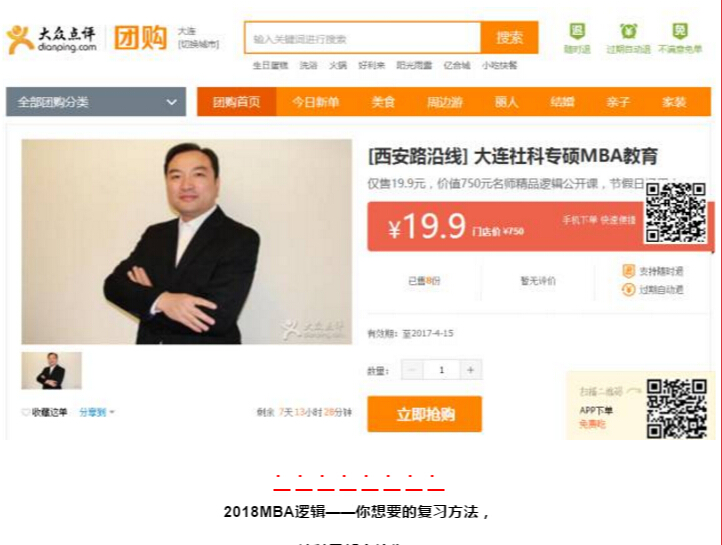 方式二:關(guān)注大眾點(diǎn)評、美團(tuán),團(tuán)購價即能獲取價值750元的邏輯公開課入場券。