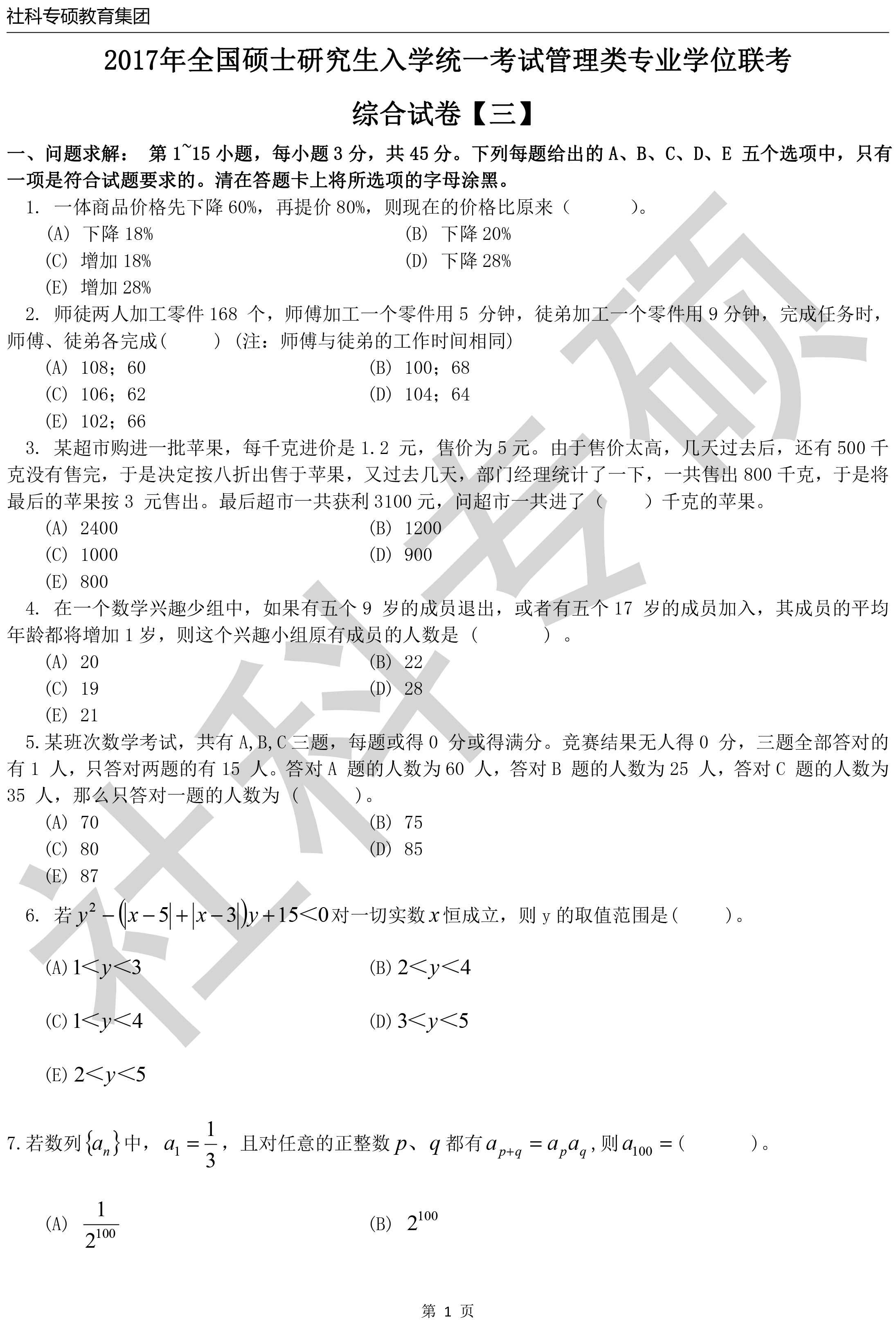 2017年全國(guó)碩士研究生入學(xué)統(tǒng)一考試管理類專業(yè)學(xué)位聯(lián)考