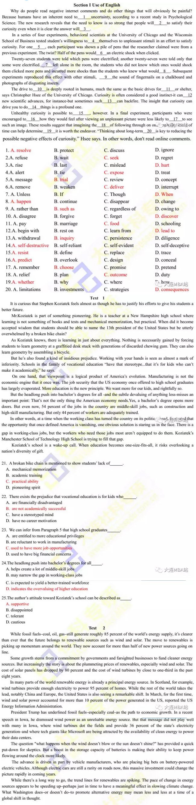 【完整版】2018管理類聯(lián)考英語(二)真題解析