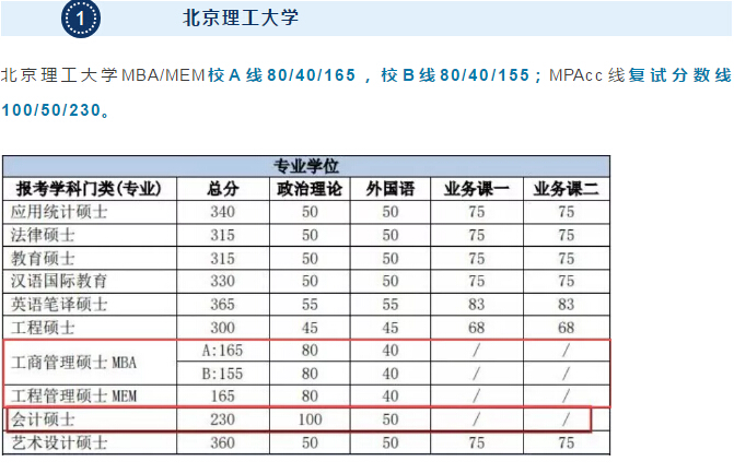 就在2號北京理工大學(xué)昨天剛剛公布了2018年MBA、MEM、MPAcc復(fù)試分數(shù)線