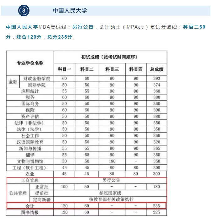 總分:243分以上(含243分);單科:管理類聯(lián)考綜合能力120分以上(含120分)、外語60分以上(含60分),參加預(yù)復(fù)試考生共139人。該方向差額復(fù)試比例較高,請考生認真準備。