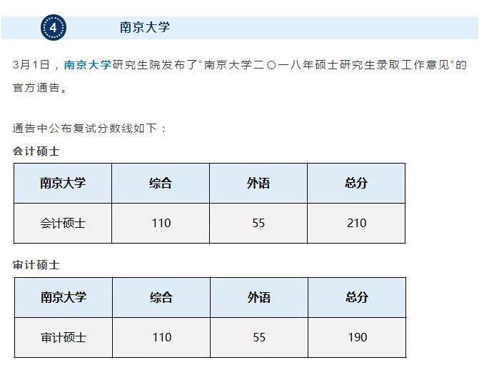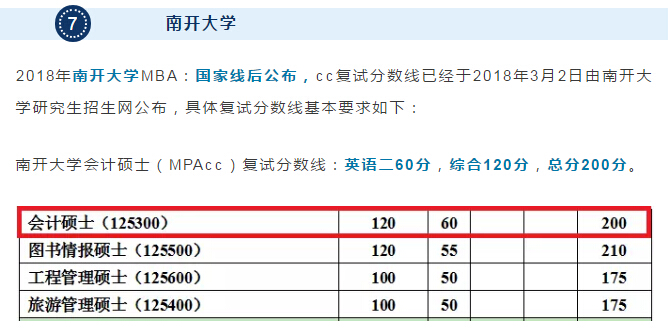 附:工商管理碩士復(fù)試分數(shù)線的相關(guān)解釋詳見南開大學(xué)MBA中心網(wǎng)站。南開A線和B線是南開大學(xué)自主分數(shù)線,南開A線在國家A線基礎(chǔ)上適度上浮,南開B線在南開A線基礎(chǔ)上浮。國家A線公布后二個工作日后公布在南開大學(xué)MBA中心網(wǎng)站上。