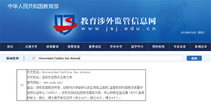 中國教育部涉外監(jiān)管信息網(wǎng)可查