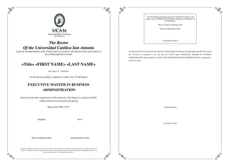 西班牙武康大學(xué)UCAM高級工商管理碩士(EMBA)學(xué)位班