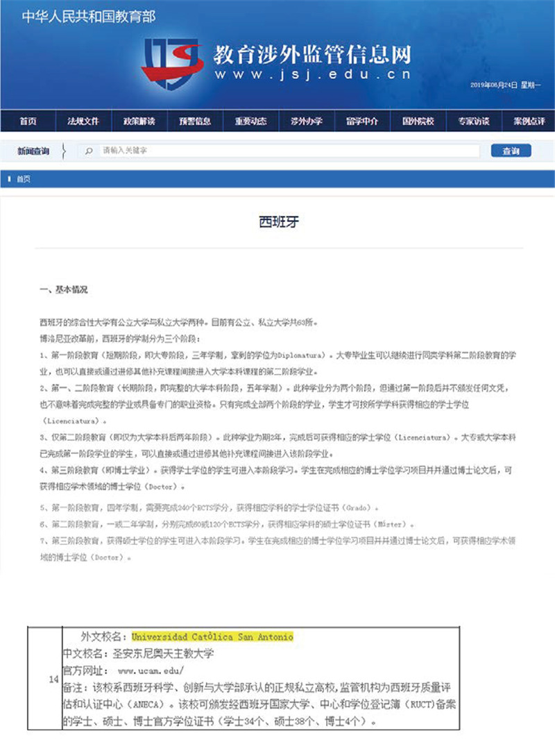 中國(guó)教育部涉外監(jiān)管網(wǎng)認(rèn)可的西班牙私立大學(xué);