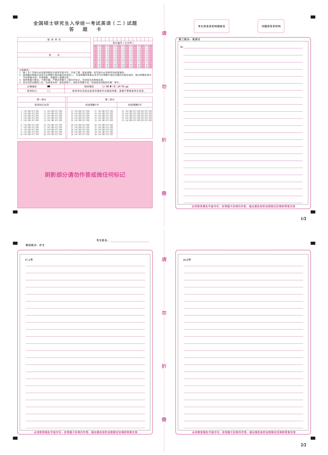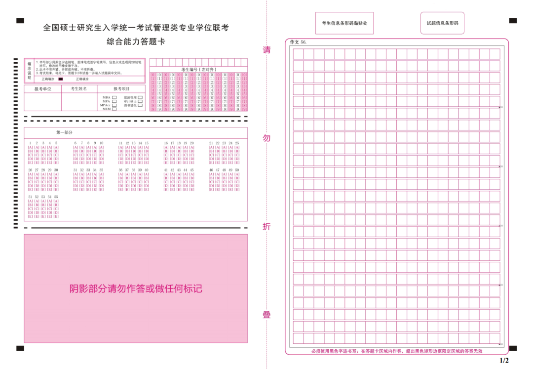 涂抹時不要過于用力,修改時可能還會留下痕跡;一定要將對應選項涂黑、涂滿。