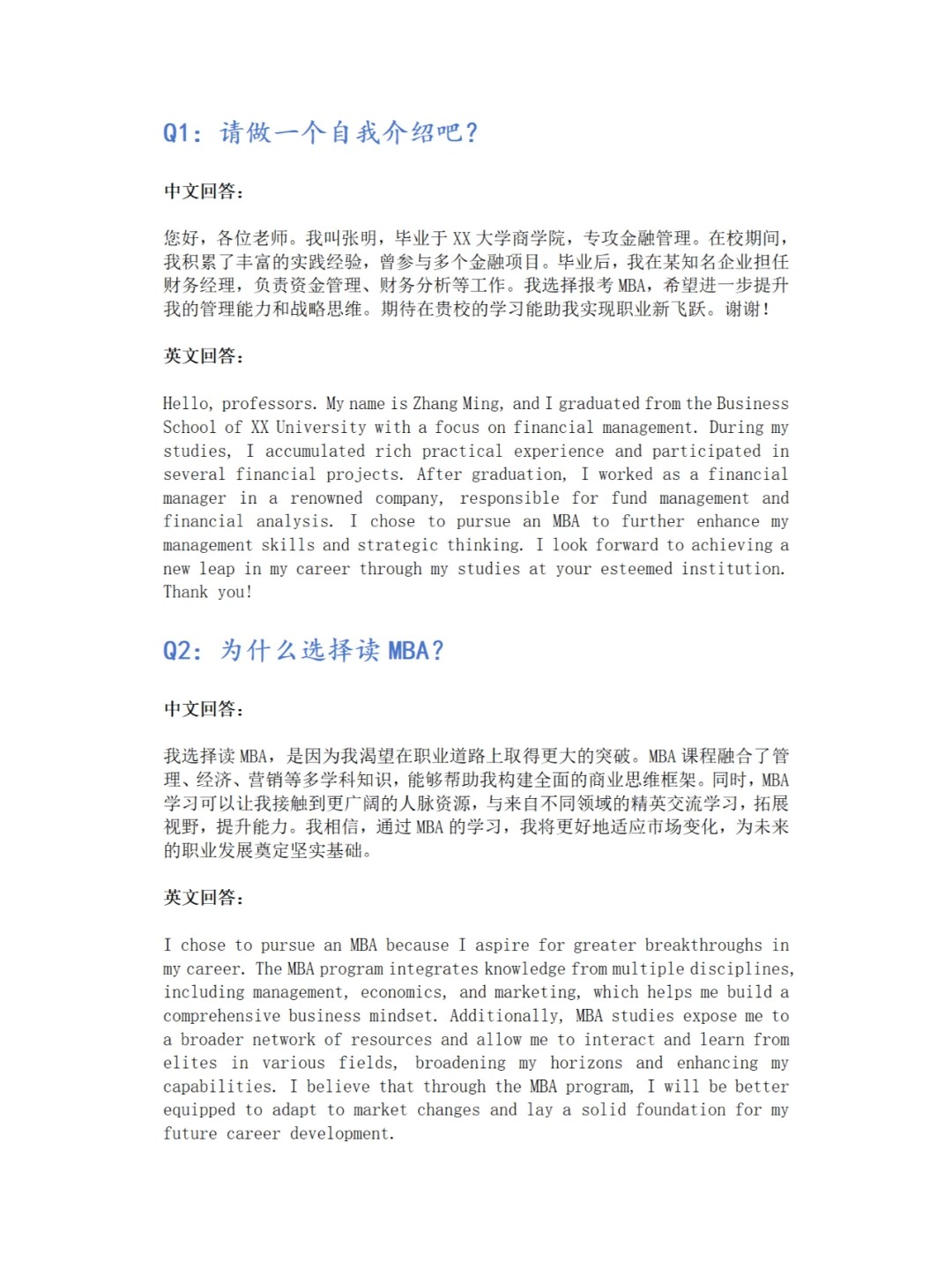 大部分院校的MBA復試英語面試通常包含兩個核心部分:首先是自我介紹,其次是問題回答環(huán)節(jié)。需要特別注意的是,在準備自我介紹以及問題答案時,一定要緊密結合自己的實際情況,避免過分夸大或虛構。為了幫助大家更好地應對這一環(huán)節(jié),小編特意整理了一些英語口語高頻問題的模板以及相應的評分標準,現(xiàn)在就可以開始有針對性地練習了,確保自己再面試中能夠流利自如地表達!
