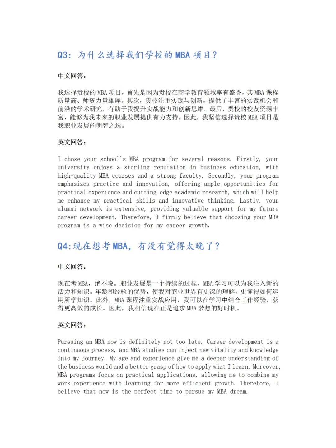 一般而言,MBA復試中的英語口語測試大多采用對話交流的方式。面試官會圍繞你的學術背景、職場經(jīng)歷、個人喜好以及職業(yè)規(guī)劃等方面,與你展開深入交流。
