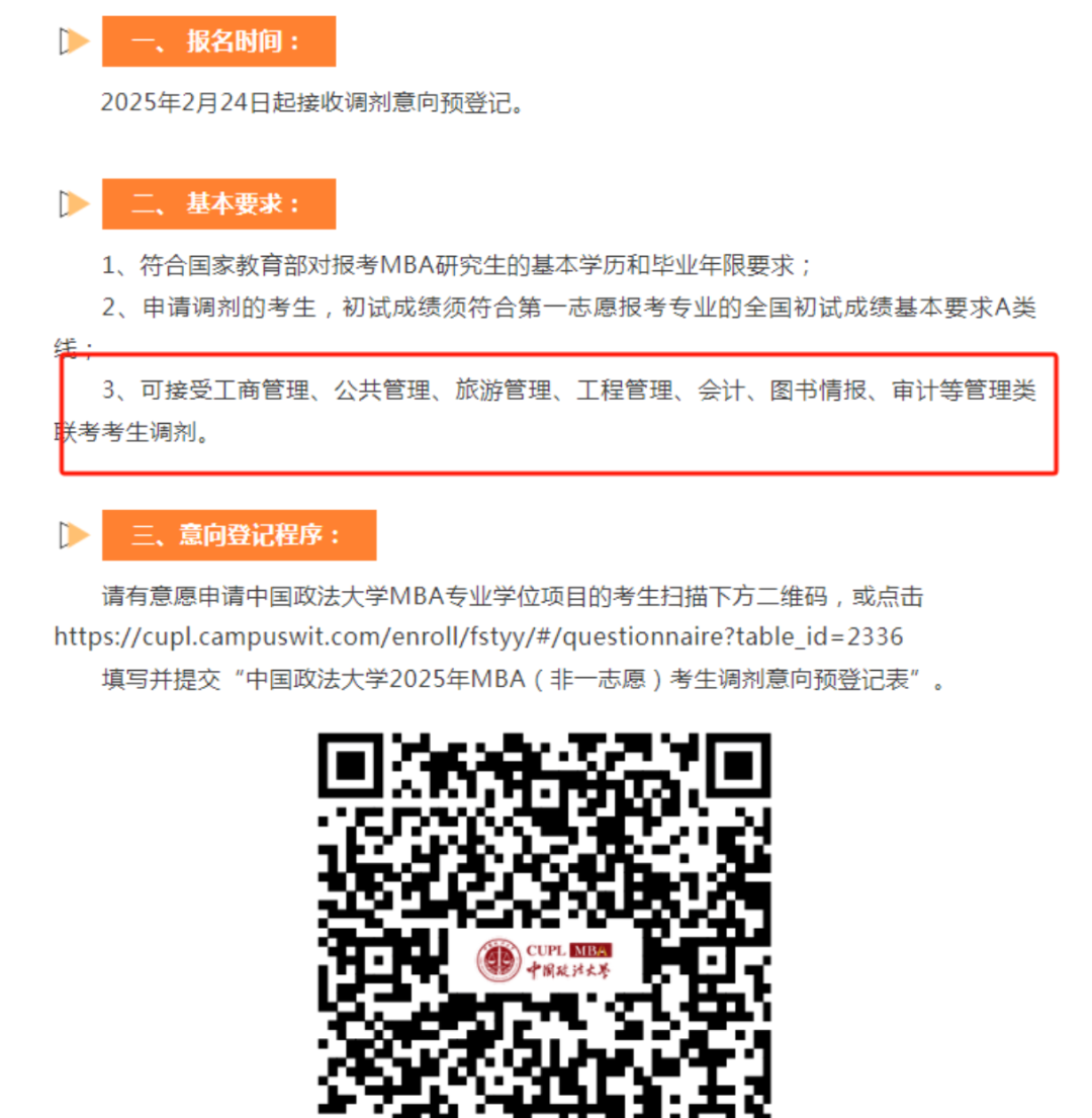 目前已經(jīng)有20+院校公布了2025管理類專業(yè)調(diào)劑意向登記通道!想要調(diào)劑的同學(xué)一定要及時關(guān)注院校的調(diào)劑信息!獲取第1手調(diào)劑資料~